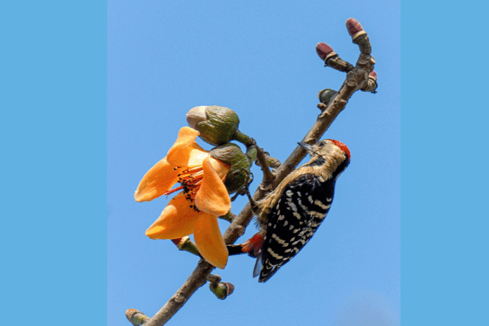 প্রকৃতিতে প্রতিনিয়ত বিচিত্রসব ঘটনা ঘটছে। এর কোনটি মানুষের দৃষ্টি আড়ালে। আবার কোনটি দৃষ্টি গোচরে। কিছু কিছু দৃশ্য প্রকৃতি প্রেমীদের মনে ভাবের খোরাক এনে দেয়। চিন্তাশীলদের মাঝে জোগায় চিন্তার খোরাক। কবি সাহিত্যিকরাা খুঁজে পান কিছু একটা লেখার উপমা। তেমনি এক অপূর্ব দৃশ্য ধারণ করা হয়েছে কাঠঠোকরা ও শিমুলের প্রেমের মুগ্ধতার স্থির চিত্র। সম্প্রতি এই ছবিটি তুলেছেন লালমনিরহাটের কালিগঞ্জ থেকে কবি, লেখক ও ওয়াইল্ড লাইফ ফটোগ্রাফার রানা মাসুদ।