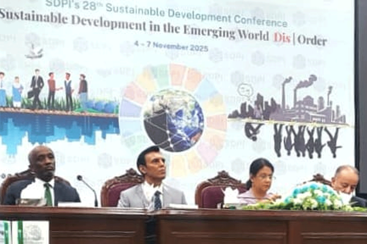 আজ পাকিস্তানের ইসলামাবাদে এসডিপিআইয়ের বার্ষিক সম্মেলনের উদ্বোধনী অধিবেশন ‘সাস্টেইনেবল ডেভেলপমেন্ট ইন দি ইমার্জিং ওয়ার্ল্ড ডিজঅর্ডার’-এ অতিথি হিসেবে বক্তব্য দিতে গিয়ে এ আহ্বান জানান।