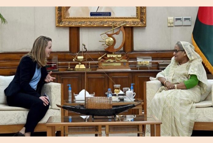 প্রধানমন্ত্রী শেখ হাসিনার সঙ্গে সৌজন্য সাক্ষাৎ করেছেন জাতিসংঘের আন্তর্জাতিক অভিবাসন সংস্থার (আইওএম) মহাপরিচালক অ্যামি পোপ।