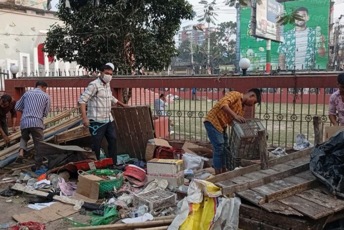 ফেনী রাজাঝির দীঘির পাড়ে অবৈধ স্থাপনা উচ্ছেদ