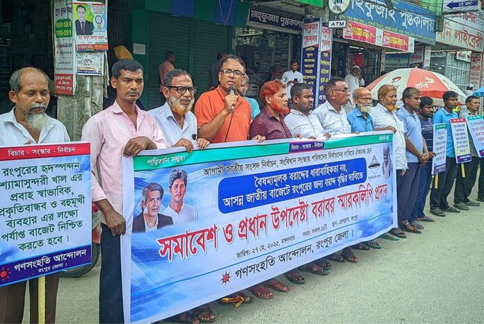 বাজেটে রংপুরের জন্য বরাদ্দ বৃদ্ধির দাবিতে মানববন্ধন