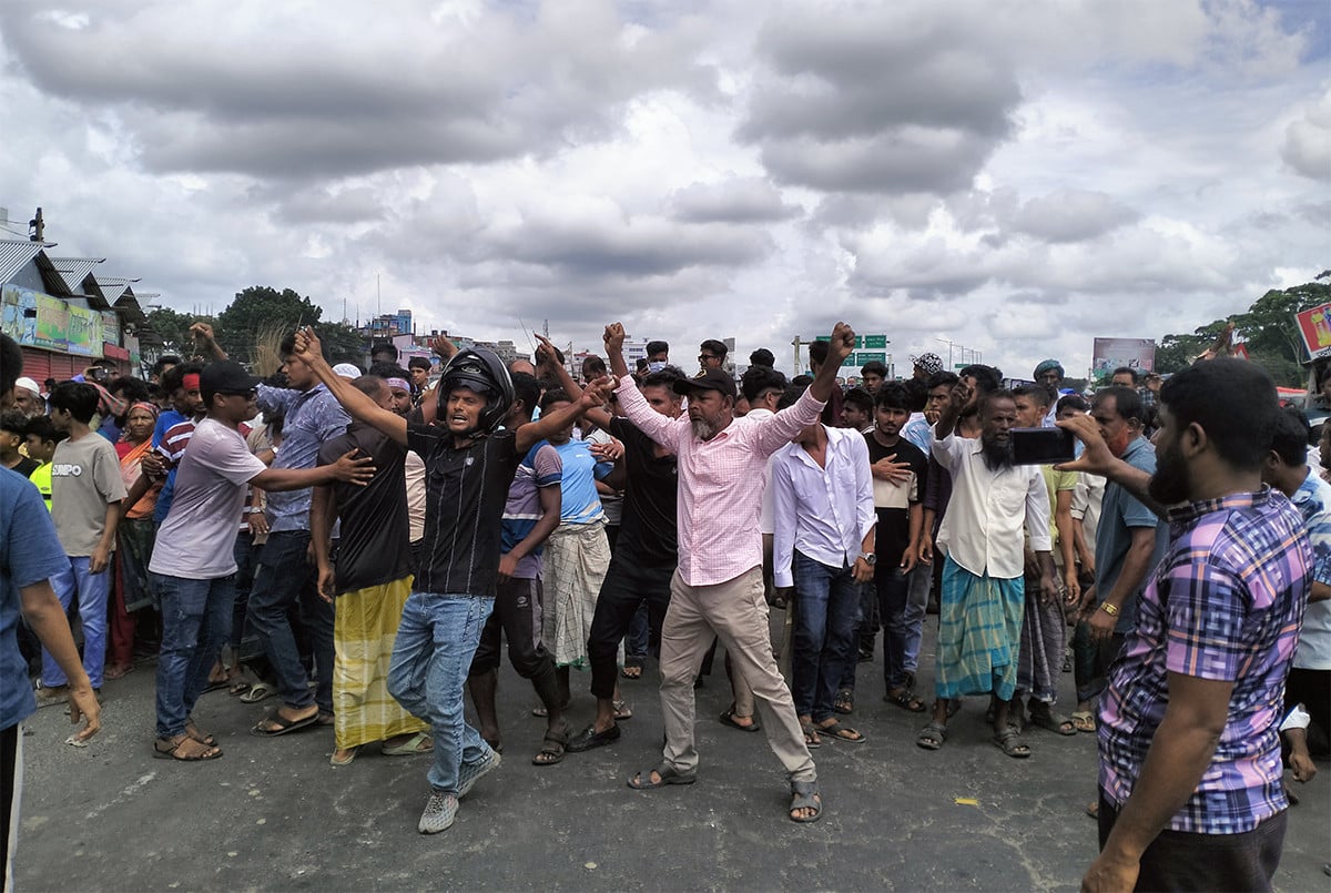 মুহূর্তে যানবাহন চলাচল বন্ধ হয়ে যায়। মহাসড়কে মিছিল স্লোগানে উত্তাল করে রেখেছে আন্দোলনকারীরা।