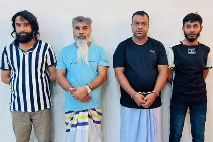 দুই শীর্ষ সন্ত্রাসী সুব্রত বাইন ওরফে ফতেহ আলী, আবু রাসেল মাসুদ ওরফে মোল্লা মাসুদ এবং দুজন শুটার আরাফাত ও শরীফ। গ্রেফতারের সময় তাদের কাছ থেকে ৫টি বিদেশি পিস্তল, ১০টি ম্যাগাজিন, ৫৩ রাউন্ড গুলি ও ১টি স্যাটেলাইট ফোন উদ্ধার করা হয়।