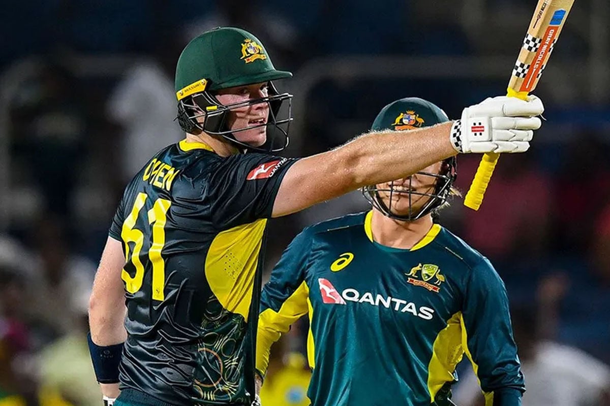 জবাবে ব্যাট করতে নেমে শুরুতেই চাপে পড়ে অস্ট্রেলিয়া। নবম ওভারে ৪ উইকেট হারিয়ে বসে সফরকারীরা। তবে এরপর হাল ধরেন ক্যামেরন গ্রিন ও অভিষেক ব্যাটার ওয়েন। পঞ্চম উইকেটে ৮০ রানের জুটি গড়ে দলকে ম্যাচে ফেরান তারা। দুজনেই তুলে নেন ফিফটি। গ্রিন ৫ ছক্কা ও ২ চারে ৫১ রান করে আউট হন। ওয়েনও ফিফটি পূর্ণ করেন আলজারি জোসেফকে ছক্কা মেরে, যদিও পরের বলেই বাউন্ডারিতে ধরা পড়েন। তখন জয় থেকে মাত্র ১৫ রান দূরে ছিল অস্ট্রেলিয়া। বাকিটা সহজেই টপকে জয় তুলে নেয় তারা, ম্যাচ গড়ায়নি শেষ ওভার পর্যন্তও।