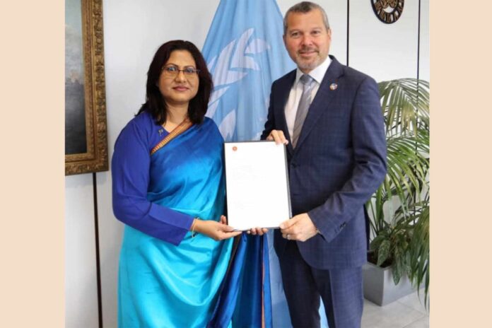 আইএমওতে স্থায়ী প্রতিনিধি হিসেবে আবিদা ইসলামের পরিচয়পত্র পেশ