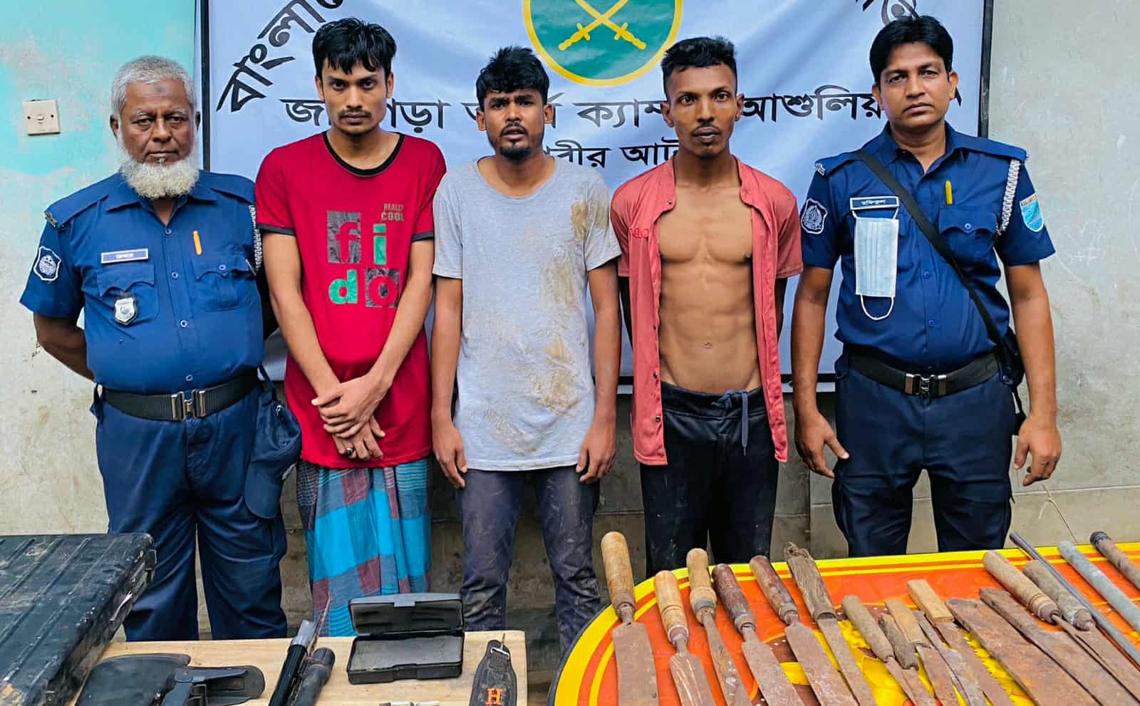 এ সময় সন্ত্রাসীদের বাসা তল্লাশীকালে একটি অত্যাধুনিক শটগান, দেশীয় তৈরি ধারালো ১৩টি চাপাতি, ৪টি ধারালো ছোরা এবং চাঁদাবাজির টাকা সহ বিভিন্ন অপরাধমূলক কর্মকাণ্ডের আলামত উদ্ধার করে সেনা সদস্যরা। আটকৃকরা হলো,মোঃ বিশাল(২০) নাজমুল (২০), শিপন(২২)।