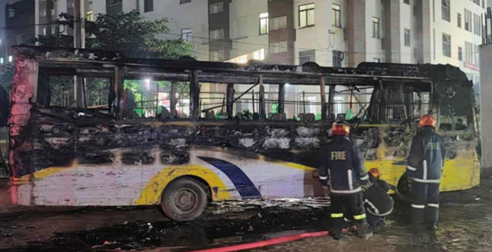 আশুলিয়ায় এবার পার্কিং-এ থাকা বাসে আগুন