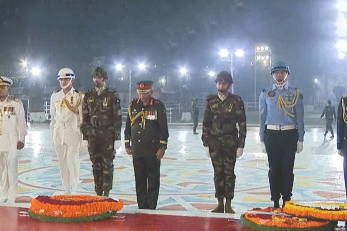 আন্তর্জাতিক মাতৃভাষা ও শহীদ দিবসের প্রথম প্রহরে কেন্দ্রীয় শহীদ মিনারে ভাষা শহীদদের প্রতি ফুলেল শ্রদ্ধা নিবেদন করেছেন তিন বাহিনীর প্রধানরা।