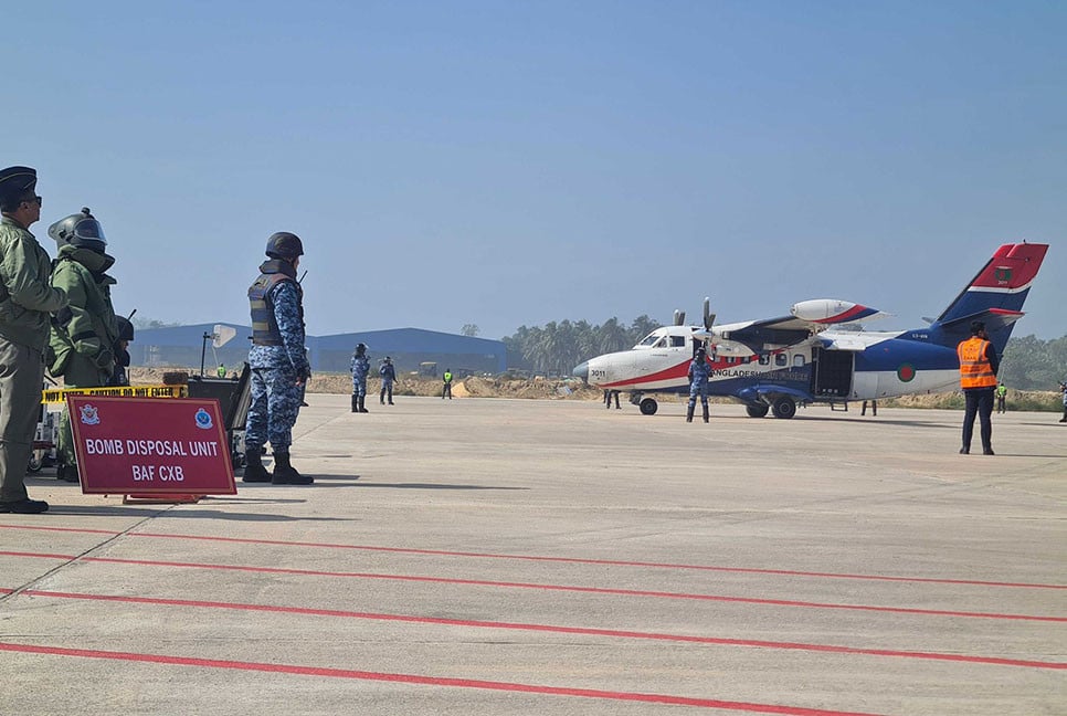 কক্সবাজার আন্তর্জাতিক বিমানবন্দরে নিরাপত্তা মহড়া অনুষ্ঠিত হয়েছে। বুধবার বেলা ১১টার দিকে কক্সবাজার বিমানবন্দরের অভ্যন্তরে এ মহড়া অনুষ্ঠিত হয়। প্রতি দুই বছর অন্তর একবার মহড়া অনুষ্ঠানে একটি হাইজ্যাক, বোমা হামলাসহ নানাবিধ ঝুঁকি মোকাবেলার সক্ষমতা যাচাই এবং অংশীজনদের প্রস্তুতি বৃদ্ধির লক্ষ্যেই এই মহড়ার আয়োজন করা হয়।