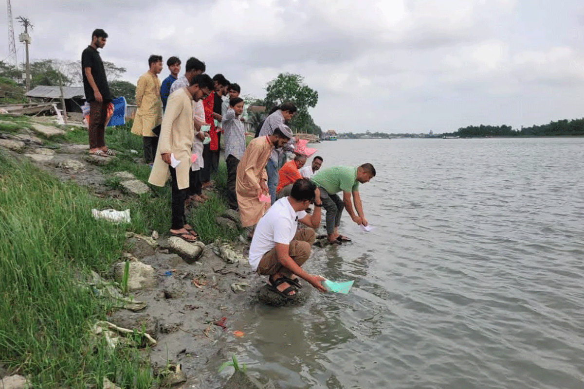 শনিবার (১৪ মার্চ) বিকালে শহরের হেলিপ্যাড মাঠ সংলগ্ন এলাকায় মানবন্ধন শেষে নদীতে নৌকা ভাসিয়ে প্রতীকী প্রতিবাদ জানানো হয়। এসময় পরিবেশ কর্মী ছাড়াও বিভিন্ন শিক্ষা প্রতিষ্ঠানের শিক্ষার্থীরা উপস্থিত ছিলেন।