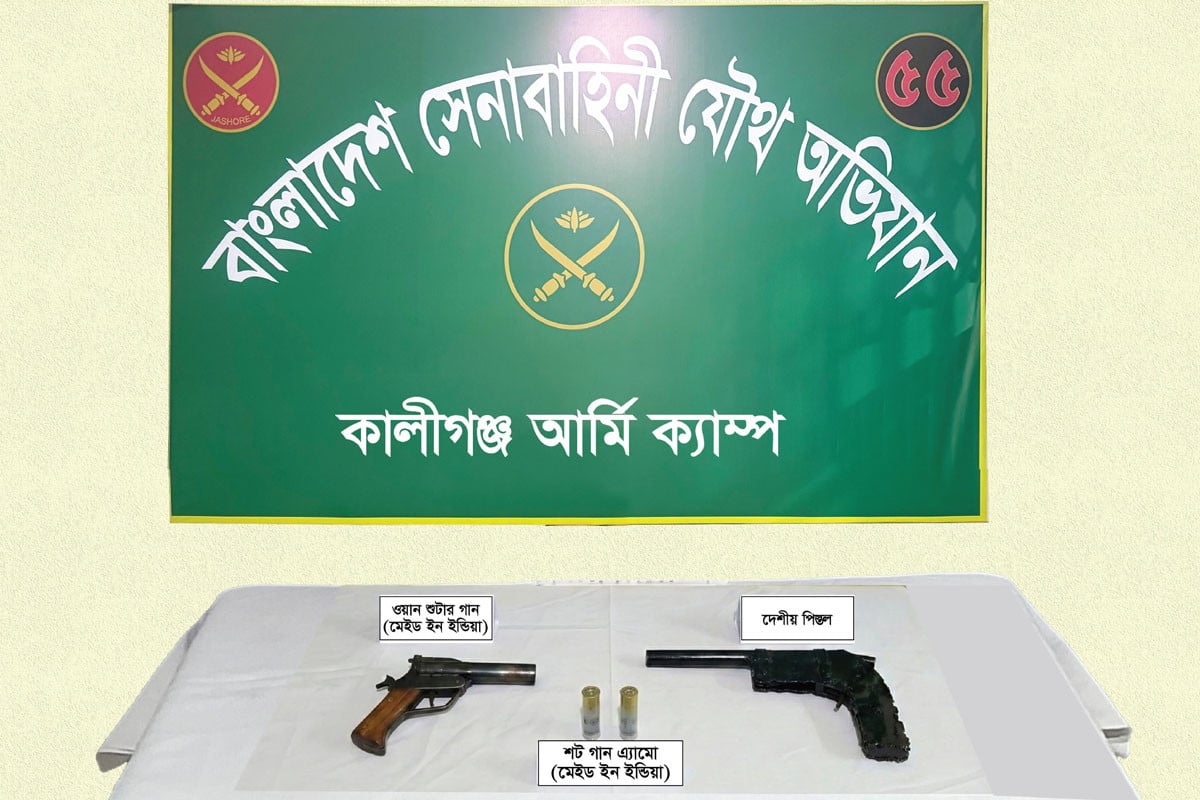 কালীগঞ্জে যৌথবাহিনীর অভিযানে অস্ত্র ও গোলাবারুদ উদ্ধার