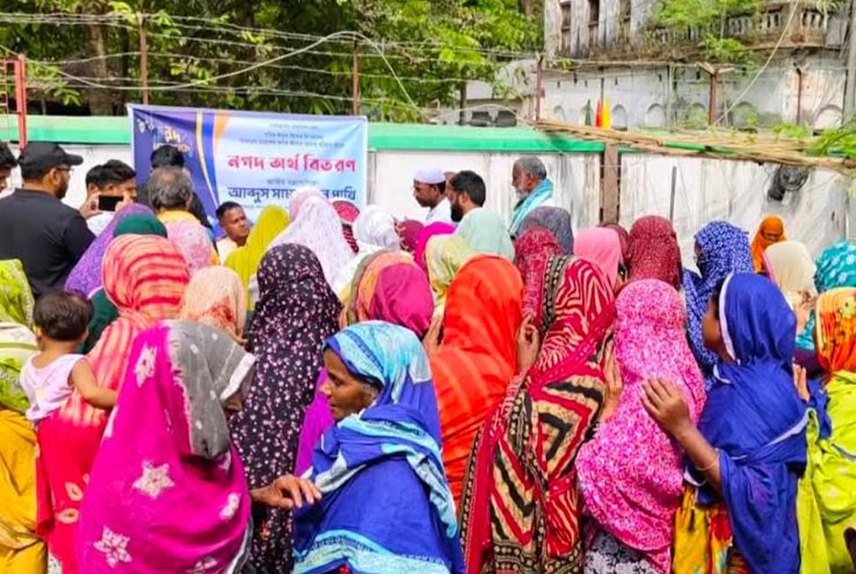 সরেজমিনে দেখা যায়, কুমারখালী সরকারি বালিকা বিদ্যালয়-এলংগীপাড়া সড়ক সংলগ্ন একটি পাকা বাড়ির ভেতরে ও বাইরে দীর্ঘ লাইনে দাঁড়িয়ে আছেন নানা বয়সী নারী-পুরুষ। তাদের প্রত্যেকের হাতে একটি করে খাম তুলে দিচ্ছিলেন এই প্রবাসী।