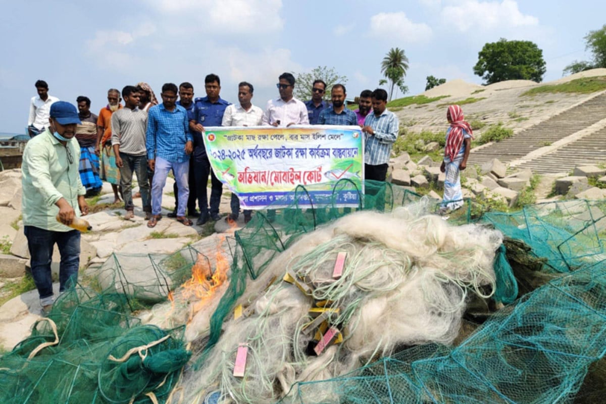 কুষ্টিয়ার কুমারখালীর পদ্মা নদীতে অভিযান চালিয়ে প্রায় ১৫ হাজার মিটার নিষিদ্ধ চায়না দুয়ারি ও কারেন্ট জাল জব্দ করে আগুনে পুড়িয়ে বিনষ্ট করেছেন ভ্রাম্যমাণ আদালত। যার বাজার মূল্য প্রায় দেড় লাখ টাকা। এছাড়াও নিষিদ্ধ জাল দিয়ে মাছ ধরার অপরাধে এক জেলেকে এক হাজার টাকা জরিমানা করা হয়।