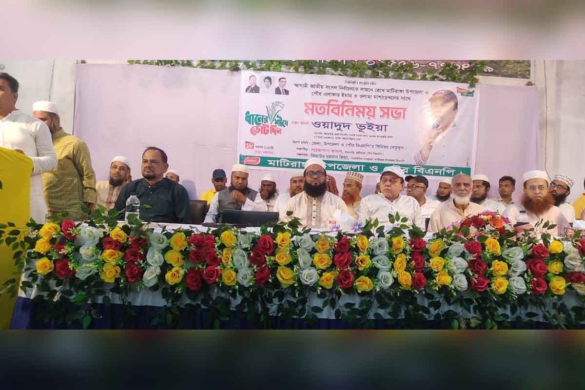 খাগড়াছড়ির মাটিরাঙ্গায় ইমাম-ওলামা মাশায়েখদের নিয়ে স্থানীয় কমিউনিটি সেন্টারে মঙ্গলবার বিকেলে এক মতবিনিময় সভা অনুষ্ঠিত হয়েছে। এতে মাটিরাঙ্গা বিএনপির সভাপতি শাহজালাল কাজল সভাপতিত্ব করেন।