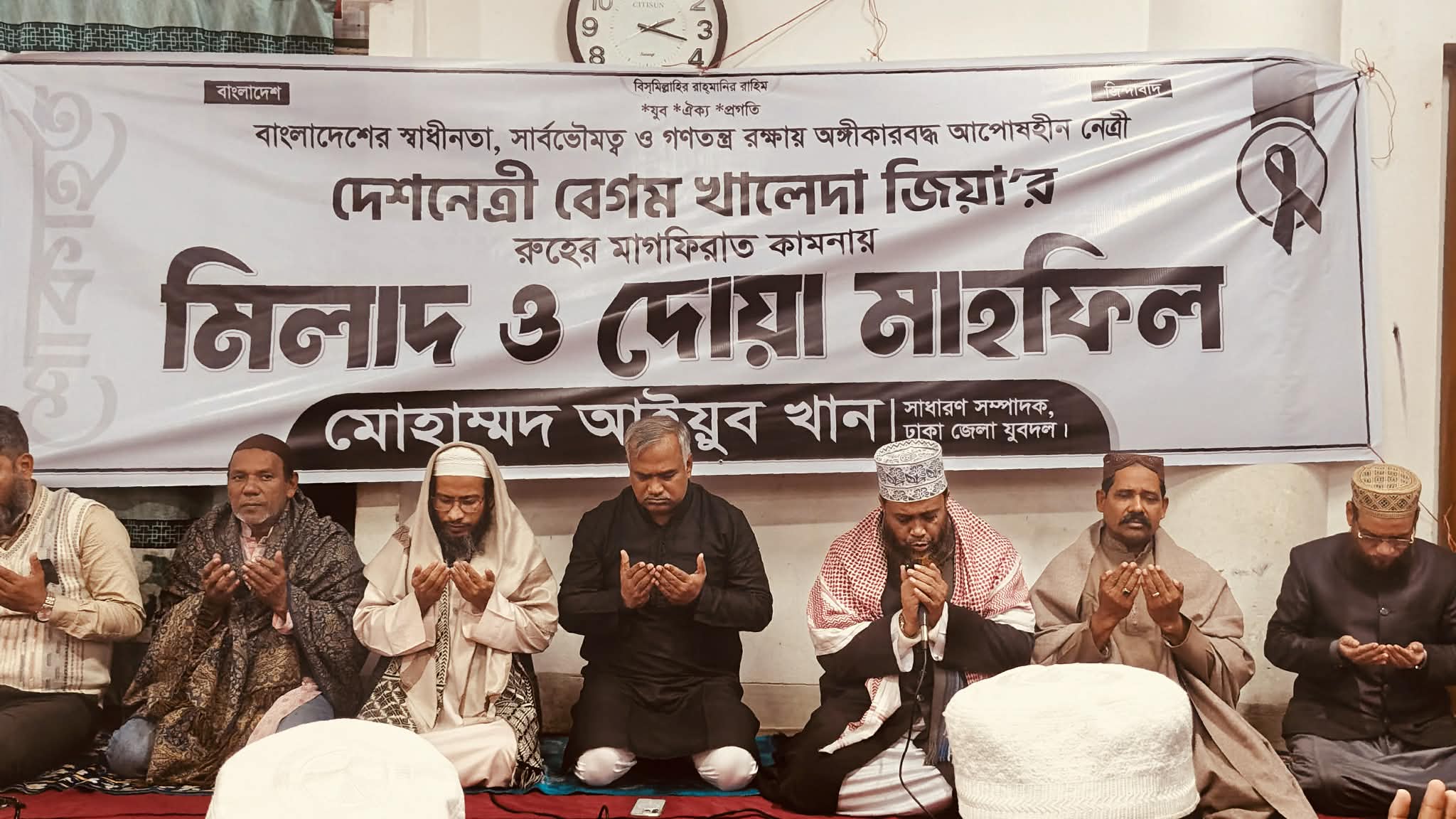 খালেদা জিয়ার রুহের মাগফেরাত কামনা করে আশুলিয়ায় দোয়া মাহফিল অনুষ্ঠিত