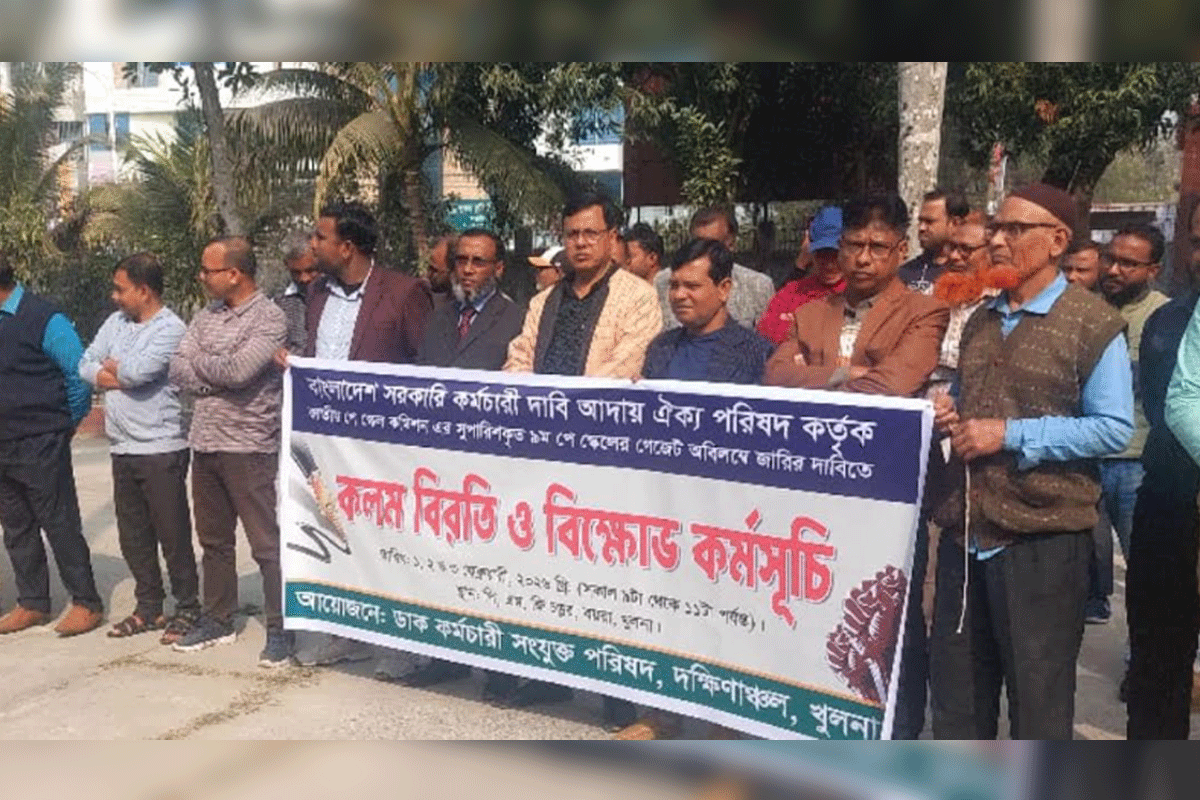 মঙ্গলবার সকাল ৯টা থেকে ১১টা পর্যন্ত তারা কলমবিরতি পালন করেন। পরে পিএমজি অফিস চত্বরে বিক্ষোভ কর্মসূচি অনুষ্ঠিত হয়। এতে সভাপতিত্ব করেন ডাক কর্মচারী সংযুক্ত পরিষদের খুলনা আহ্বায়ক মো. শহিদুল্লাহ।