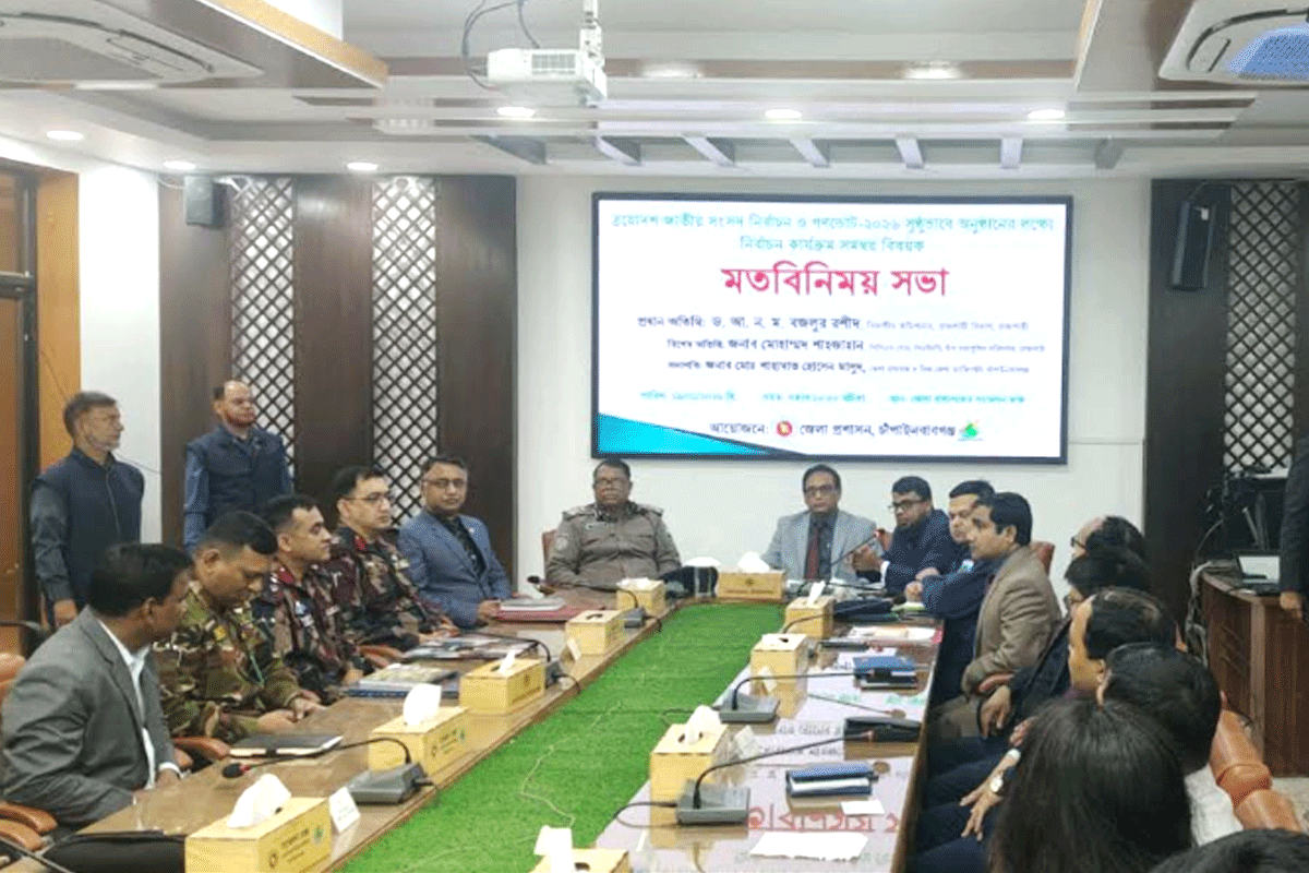 চাঁপাইনবাবগঞ্জে আগামী জাতীয় সংসদ নির্বাচন ও গণভোট অবাধ, সুষ্ঠু ও শান্তিপূর্ণভাবে অনুষ্ঠানের লক্ষ্যে মতবিনিময় সভা অনুষ্ঠিত হয়েছে।