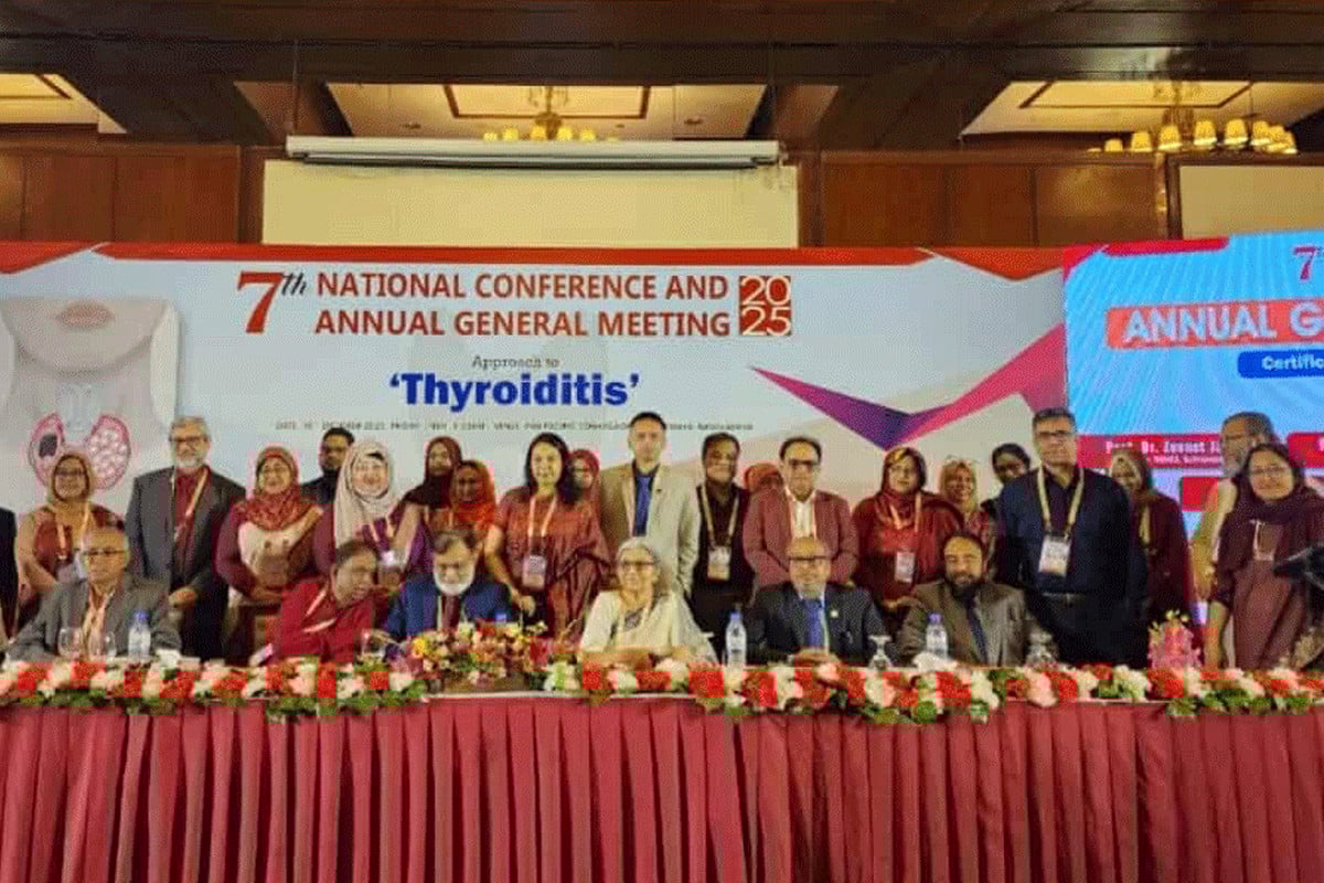 শুক্রবার রাজধানীর একটি হোটেলে অনুষ্ঠিত বাংলাদেশ থাইরয়েড সোসাইটির (বিটিএস) সপ্তম জাতীয় সম্মেলন ও বার্ষিক সাধারণ সভায় এ তথ্য জানান বক্তারা। এবারের বৈজ্ঞানিক সম্মেলনের থিম ছিল ‘অ্যাপ্রোচ টু থাইরয়েডাইটিস’।