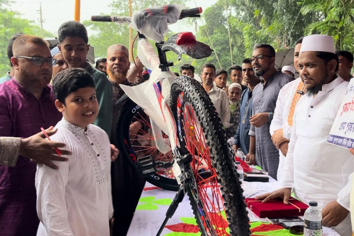 নোয়াখালীর বেগমগঞ্জ ৪০ দিন তাকবীরে উলার সাথে মসজিদে জামাতে নামাজ আদায়কারী শিশু কিশোররা পেলো সাইকেল উপহার। উপজেলার কুতুবপুর জামাল উদ্দিন ভূঁইয়া জামে মসজিদ প্রাঙ্গনে আজ দুপুরে আয়োজিত অনুষ্ঠানে প্রধান অতিথি ছিলেন কাওমী ফাউন্ডেশনের চেয়ারম্যান মাওলানা ইয়াসিন আরাফাত। মসজিদ কমিটির সভাপতি আবুল হোসেনের সভাপতিত্বে এতে চার্টার্ড লাইফ ইন্সুরেন্স নোয়াখালী অফিসের ভাইস প্রেসিডেন্ট মনিরুল ইসলাম মনির, সাংবাদিক ইয়াকুব নবী ইমন, ডাক্তার আক্তারুজ্জামান বাদল, সমাজসেবী গোলাম শাহরিয়ার রিংকুসহ অনেকে উপস্থিত ছিলেন।