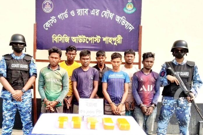 কোস্ট গার্ড মিডিয়া কর্মকর্তা লেফটেন্যান্ট কমান্ডার সিয়াম-উল-হক বৃহস্পতিবার জানান, গোপন সংবাদের ভিত্তিতে ১০ এপ্রিল দিবাগত রাতে বাংলাদেশ কোস্টগার্ড আউটপোস্ট শাহপরী এবং র্যাব-১৫ (সিপিসি-১) টেকনাফ ক্যাম্পের সমন্বয়ে শাহপরীর দ্বীপ ঘোলার চর সংলগ্ন সমুদ্র এলাকায় যৌথ অভিযান চলাকালীন সন্দেহজনক একটি ইঞ্জিন চালিত কাঠের বোটকে থামানোর জন্য সংকেত দেয়। অমান্য করে গতি বাড়িয়ে পালিয়ে যাওয়ার চেষ্টা করলে কোস্ট গার্ড ঘন্টাব্যাপি বোটটিকে ধাওয়া করে গভীর সমুদ্র হতে আটক করে। পরে আটক বোটটিতে তল্লাশি চালিয়ে জালের ভিতর একটি বস্তায় বিশেষভাবে লুকায়িত অবস্থায় ৫০ হাজার পিস ইয়াবাসহ ২৬ নং রোহিঙ্গা ক্যাম্পের মোহাম্মদ ফারুক (২০), ওমর ফারুক (২৭), আরাফাত উল্লাহ (২৬), মোহাম্মদ আনিস (২৩), ফয়াজ উল্লাহ (২৭), মোহাম্মদ রফিক (২৬) ও আসাদ উল্লাহকে (২২) গ্রেফতার করা হয়।