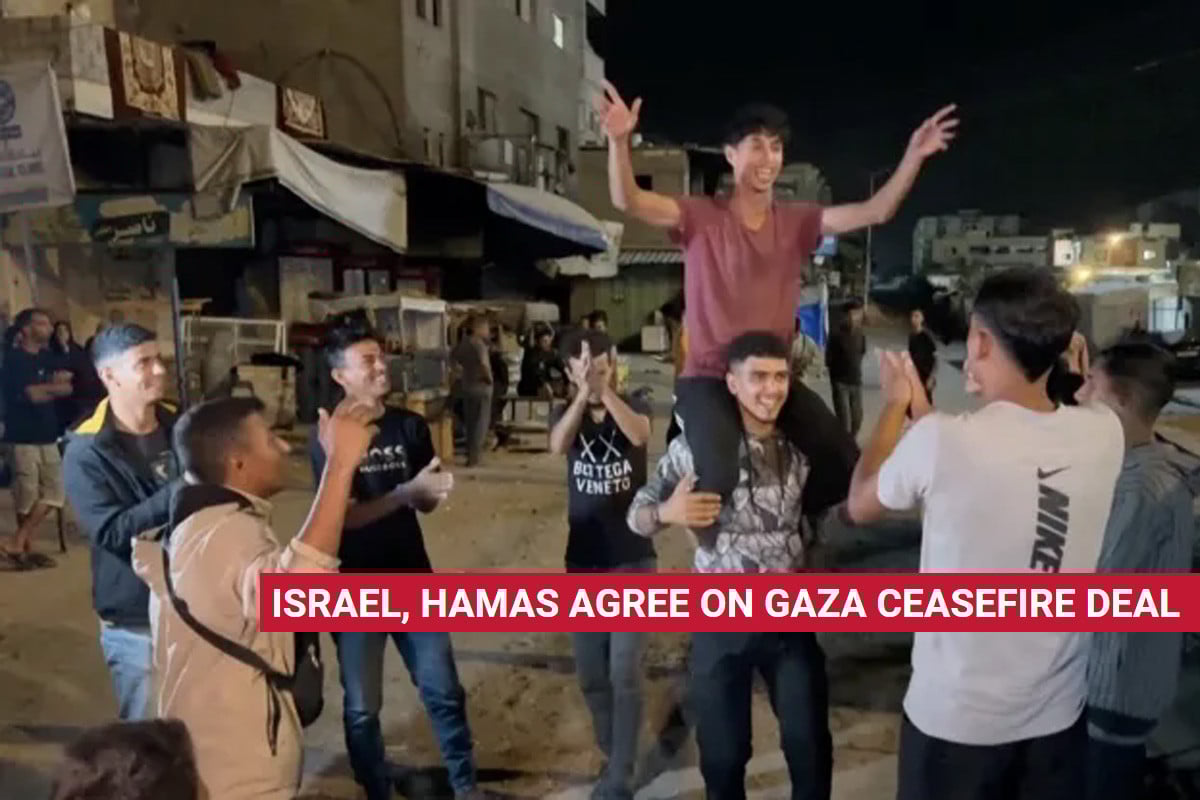 ইসরায়েল ও হামাসের এই যুদ্ধবিরতি চুক্তি সই করার খবর প্রকাশ্যে আসার পর গাজার খান ইউনিসে উল্লাস করতে দেখা গেছে ফিলিস্তিনি যুবকদের।
