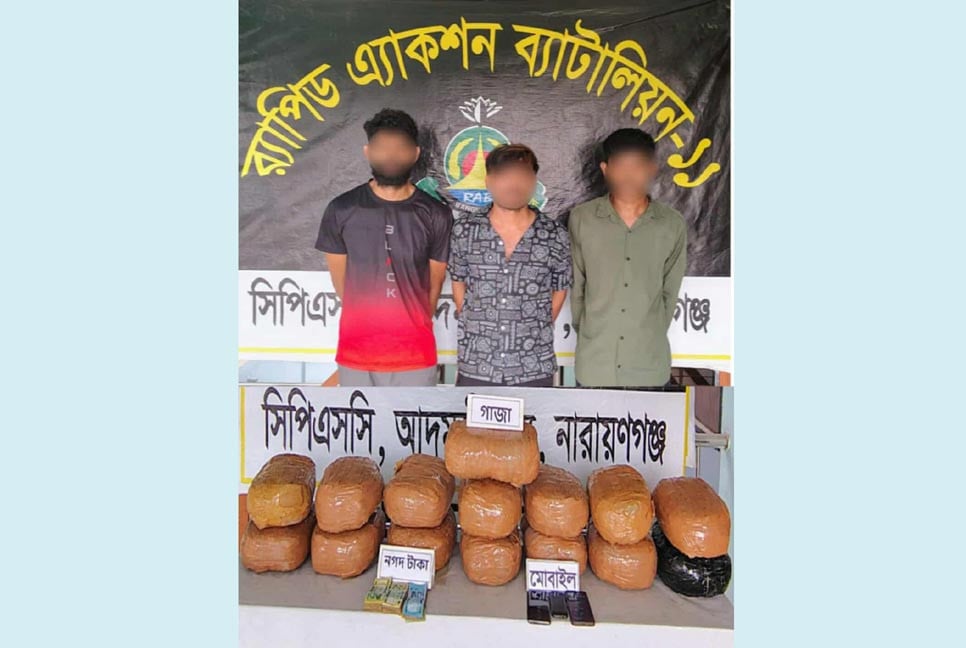 নারায়ণগঞ্জের বন্দর উপজেলার মদনপুর এলাকা থেকে ৩০ কেজি ৫০০ গ্রাম গাঁজাসহ তিন মাদক কারবারিকে গ্রেফতার করেছে র্যাব-১১। অভিযানে মাদক পরিবহনে ব্যবহৃত একটি পিকআপ ও একটি মোটরসাইকেলও জব্দ করা হয়েছে।