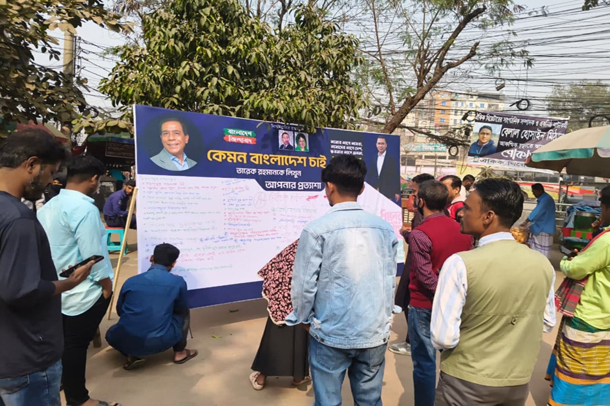 নারায়ণগঞ্জে বাংলাদেশের ভবিষ্যৎ রাষ্ট্রব্যবস্থা, গণতন্ত্র ও জনজীবন নিয়ে সাধারণ মানুষের প্রত্যাশা ও চাহিদা বিএনপি ভারপ্রাপ্ত চেয়ারম্যান তারেক রহমানকে জানানোর উদ্দেশ্যে ‘কেমন বাংলাদেশ চাই- তারেক রহমানকে লিখুন’ শীর্ষক জনমত সংগ্রহ কর্মসূচি অনুষ্ঠিত হয়েছে।