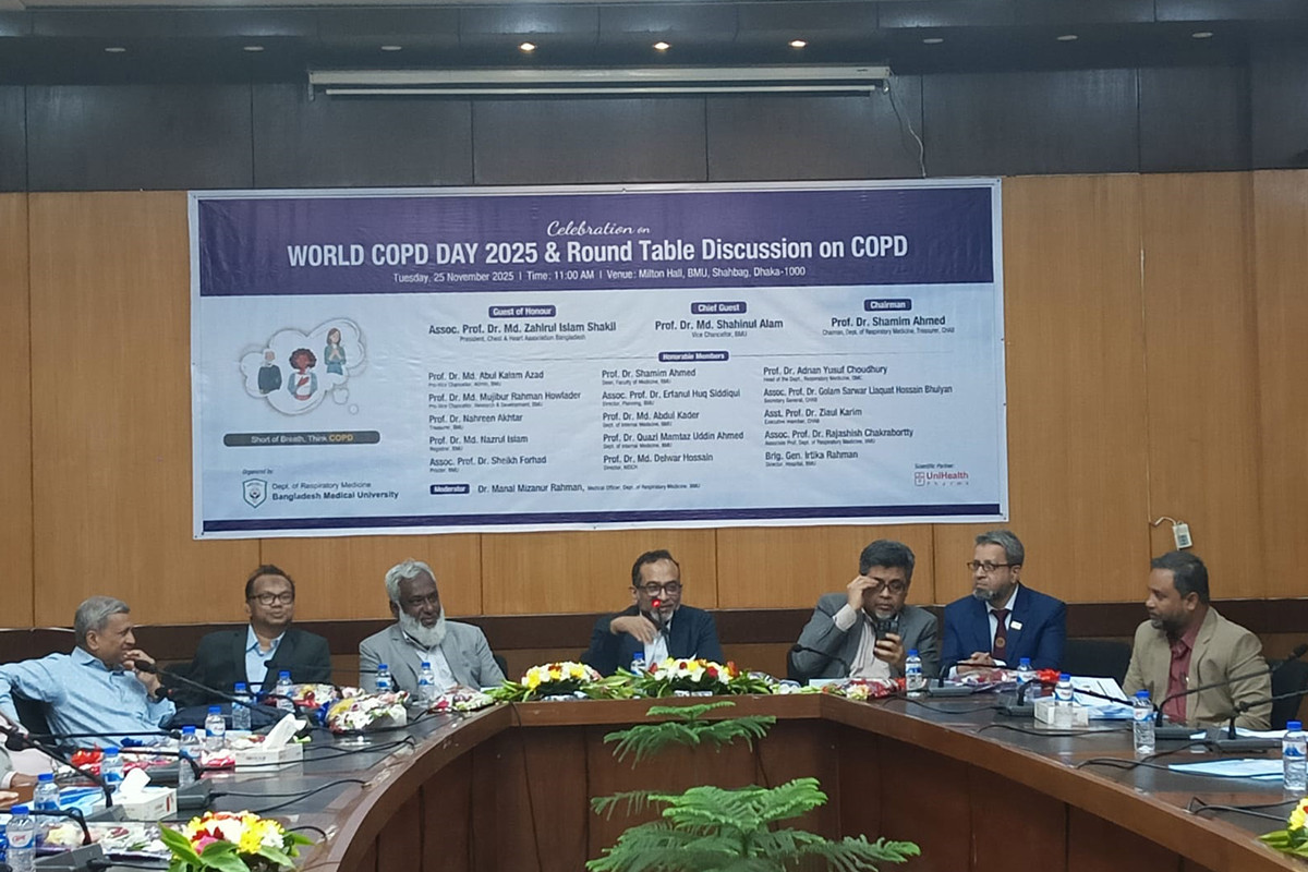মঙ্গলবার বাংলাদেশ মেডিকেল বিশ্ববিদ্যালয়ের (বিএমইউ) শহীদ ডা. মিল্টন হলে আয়োজিত এক গোলটেবিল আলোচনায় চিকিৎসকরা এসব কথা বলেন। ‘সিওপিডি : জনস্বাস্থ্যের গোপন সংকট’ শীর্ষক এই আলোচনা সভার আয়োজন করে বিএমইউর বক্ষব্যাধি (রেসপিরেটরি) বিভাগ।