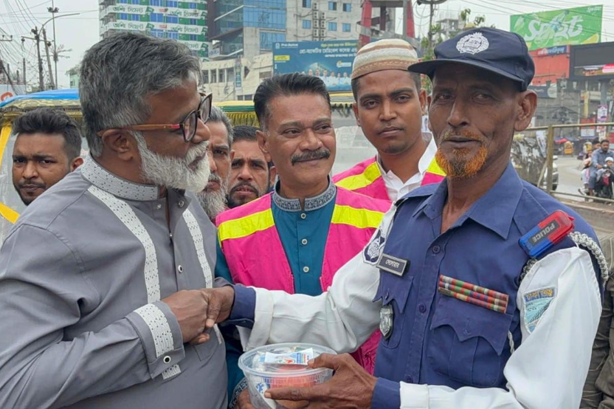 খোরশেদ বলেন, ট্রাফিক পুলিশরা ঈদের দিনও রোদে পুড়ে, বৃষ্টিতে ভিজে দায়িত্ব পালন করেন, যাতে সাধারণ মানুষ স্বাচ্ছন্দ্যে চলাচল করতে পারে। হাসপাতালে থাকা রোগীরাও এই দিনে আপনজনদের কাছ থেকে দূরে থাকেন, আর নার্সরা তাদের নিরলস সেবা দিয়ে যান। তাই তাদের পাশে দাঁড়ানো আমাদের সামাজিক দায়িত্ব। এ সময় উপস্থিত ছিলেন আনোয়ার মাহমুদ বকুল, বাচ্চু বেপারী, শওকত খন্দকার ও আফজাল হোসেন প্রমুখ।