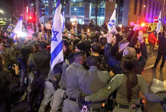 শনিবার বিক্ষোভ করার সময় তেল আবিবের রাজপথ থেকে অন্তত ২৩ জনকে আটক করা হয়েছে। ইসরায়েলি পুলিশ বিক্ষোভকারীদের ‘দাঙ্গাকারী’ হিসেবে চিহ্নিত করেছে।