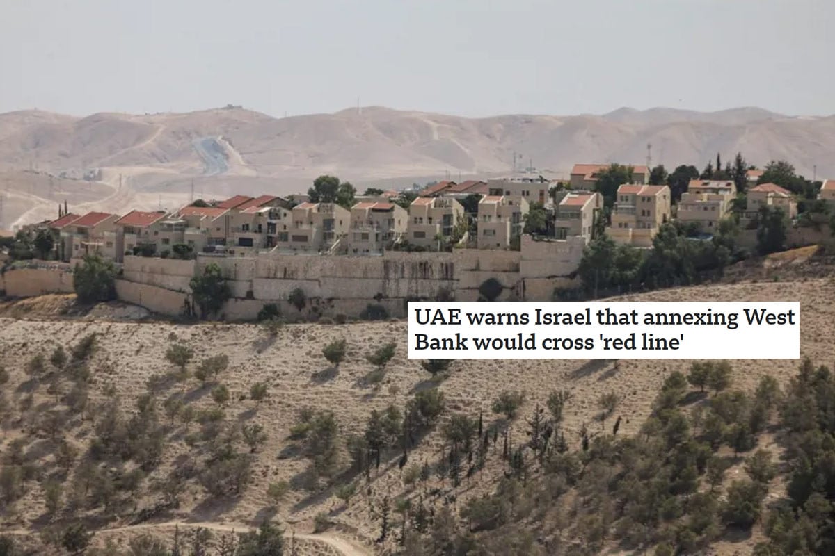 ফিলিস্তিনের অধিকৃত পশ্চিম তীরের কিছু অংশ ইসরায়েলের সঙ্গে সংযুক্ত করার পরিকল্পনাকে ‘লাল রেখা’ হিসেবে আখ্যায়িত করেছে সংযুক্ত আরব আমিরাত। দেশটির রাজনৈতিক বিষয়ক সহকারী মন্ত্রী লানা নুসেইবেহ এক বিবৃতিতে এই কঠোর বার্তা দিয়েছেন।