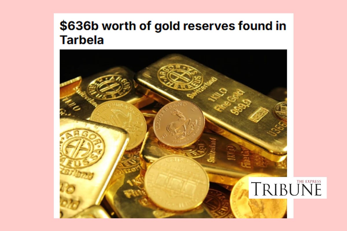 পাকিস্তানের খাইবার পাখতুনখোয়া প্রদেশের তারবেলার মাটির নমুনা পরীক্ষায় প্রায় ৬৩৬ বিলিয়ন মার্কিন ডলার মূল্যের স্বর্ণের মজুদ শনাক্ত হয়েছে বলে দাবি করেছেন দেশটির চেম্বার অব কমার্স অ্যান্ড ইন্ডাস্ট্রির সাবেক সিনিয়র সহ-সভাপতি ও এয়ার করাচির চেয়ারম্যান হানিফ গহর। খবর দ্য এক্সপ্রেস ট্রিবিউনের