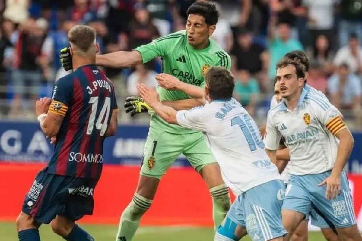 স্পেনের দ্বিতীয় বিভাগের এই ম্যাচটি অবনমন এড়ানোর লড়াইয়ের কারণে আগে থেকেই ছিল টানটান উত্তেজনায় ভরপুর। খেলার প্রথমার্ধে পেনাল্টি ঠেকিয়ে সারাগোসাকে লড়াইয়ে রেখেছিলেন আর্জেন্টাইন গোলরক্ষক এস্তেবান আন্দ্রাদ। তবে ম্যাচের শেষ দিকে নিজের আবেগ ধরে রাখতে পারেননি তিনি। দলের ১-০ গোলে পিছিয়ে থাকার মুহূর্তে হুয়েস্কার এক ডিফেন্ডারকে ধাক্কা দেওয়ায় দ্বিতীয় হলুদ কার্ড দেখেন তিনি।