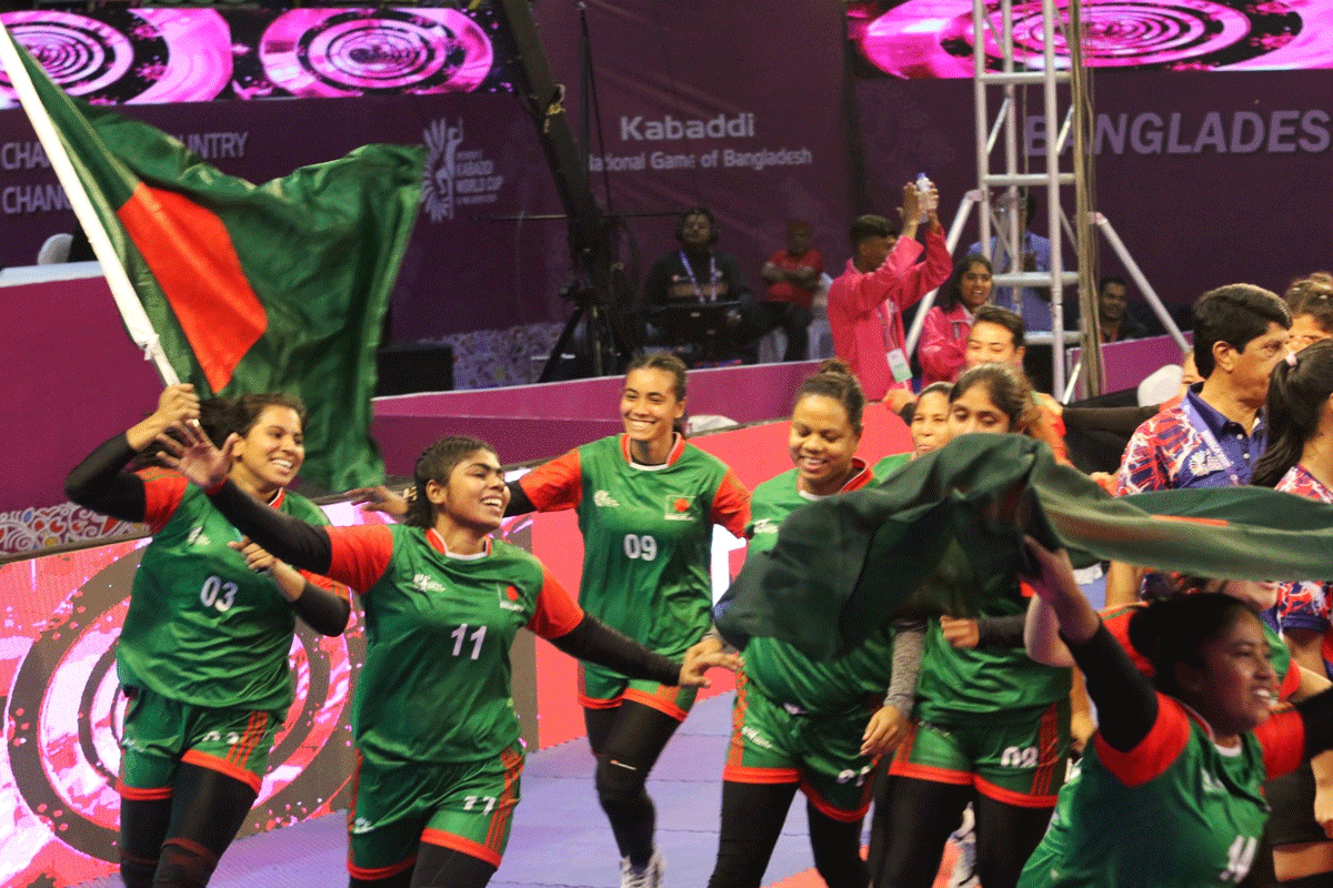 ইতিহাস গড়ে প্রথমবারের মতো নারী কাবাডি বিশ্বকাপের সেমিফাইনালে উঠেছে বাংলাদেশ দল। শেষ চারে ওঠায় পদকও নিশ্চিত হল তাদের। শনিবার (২২ নভেম্বর) মিরপুরের শহীদ সোহরাওয়ার্দী ইনডোর স্টেডিয়ামে ৪০-৩১ পয়েন্টে থাইল্যান্ডকে হারিয়েছে মালেকা পারভীনের দল।