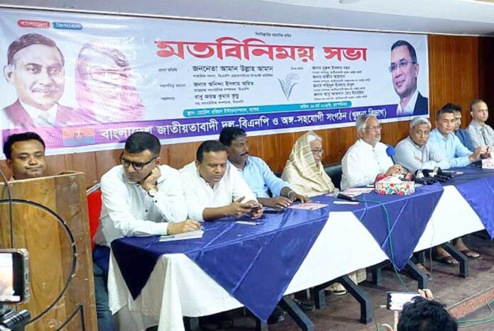 বিএনপির জাতীয় নির্বাহী কমিটির খুলনা বিভাগীয় সাংগঠনিক সম্পাদক অনিন্দ্য ইসলাম অমিতের সভাপতিত্বে মতবিনিময় সভায় আরও বক্তব্য রাখেন বিএনপির কেন্দ্রীয় কমিটির সদ্য ভাইস চেয়ারম্যান নার্গিস বেগম, সহ-সাংগঠনিক সম্পাদক জয়ন্ত কুমার কুণ্ডু, যুবদলের কেন্দ্রীয় কমিটির সাধারণ সম্পাদক নূরুল ইসলাম নয়ন, স্বেচ্ছাসেবক দলের কেন্দ্রীয় কমিটির সাধারণ সম্পাদক রাজিব আহসান, কৃষক দলের কেন্দ্রীয় কমিটির সাধারণ সম্পাদক শহিদুল ইসলাম বাবুল ও ছাত্রদলের কেন্দ্রীয় কমিটির সিনিয়র সহ-সভাপতি আবু আফসান মো. ইয়াহইয়া।