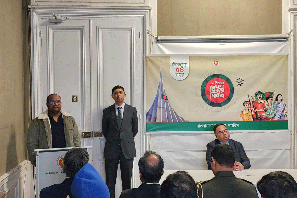 যথাযোগ্য মর্যাদা ও উৎসাহ-উদ্দীপনার মধ্য দিয়ে ফ্রান্সে অবস্থিত বাংলাদেশ দূতাবাসে মহান বিজয় দিবসের ৫৪তম বার্ষিকী উদযাপিত হয়েছে।