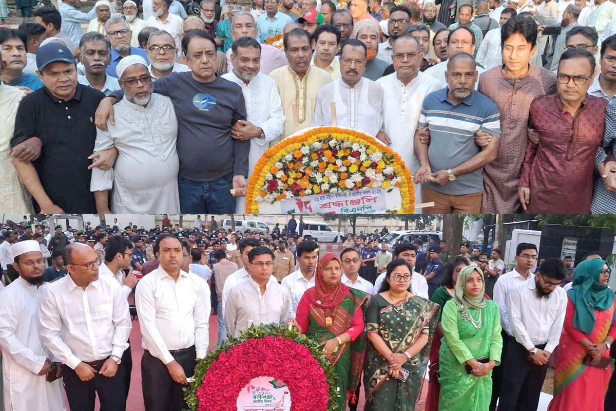 প্রথমে জেলা প্রশাসনের পক্ষ থেকে শহীদদের শ্রদ্ধা নিবেদনে পুষ্পমাল্য অর্পণ করা হয়। এসময় উপস্থিত ছিলেন জেলা প্রশাসক মো. তৌফিকুর রহমান, স্থানীয় সরকারের উপপরিচালক রাজিয়া সুলতানা, অতিরিক্ত জেলা প্রশাসক (সার্বিক) মো. মেজবাউল করিম, অতিরিক্ত জেলা প্রশাসক (রাজস্ব) পি.এম.ইমরুল কায়েস, অতিরিক্ত জেলা প্রশাসক (শিক্ষা ও আইসিটি) সালমা আক্তার, সদর উপজেলা নির্বাহী কর্মকর্তা মো. আব্দুল ওয়াজেদ প্রমুখ।