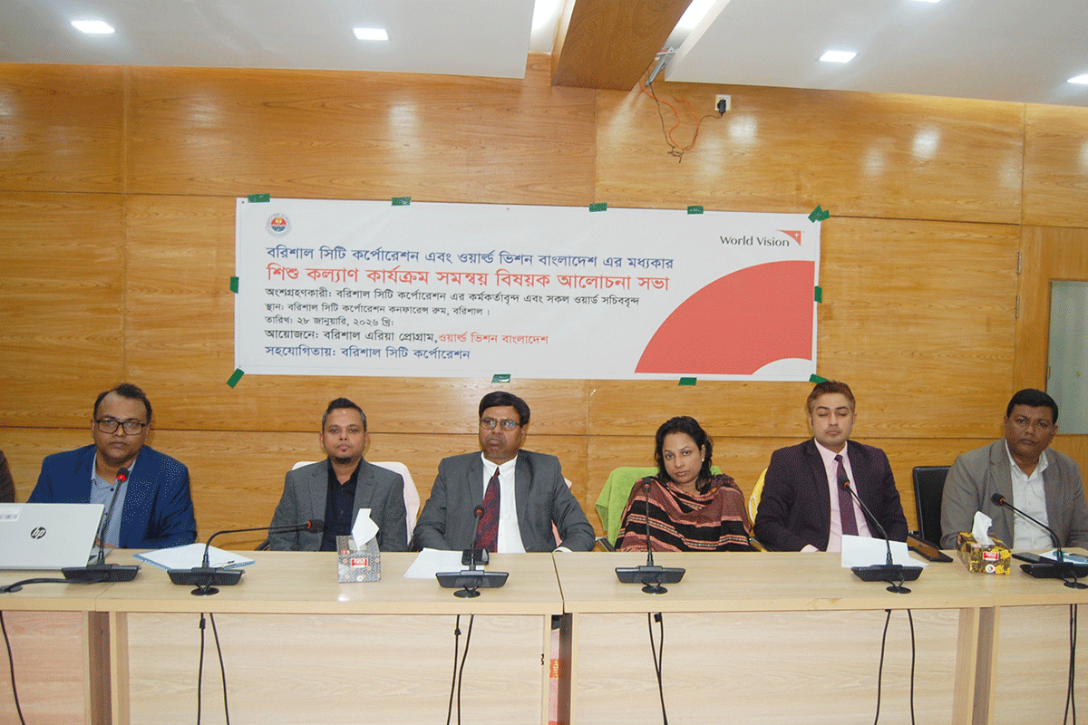 শিশু কল্যাণ কার্যক্রমের সমন্বয় ও সহযোগিতা জোরদারের লক্ষ্যে বরিশাল সিটি করপোরেশন ও ওয়ার্ল্ড ভিশন যৌথভাবে এই আলোচনা সভার আয়োজন করে। সভায় বিসিসির কর্মকর্তা ও করপোরেশেনের ৩০টি ওয়ার্ডের সচিবরা অংশ নেন।