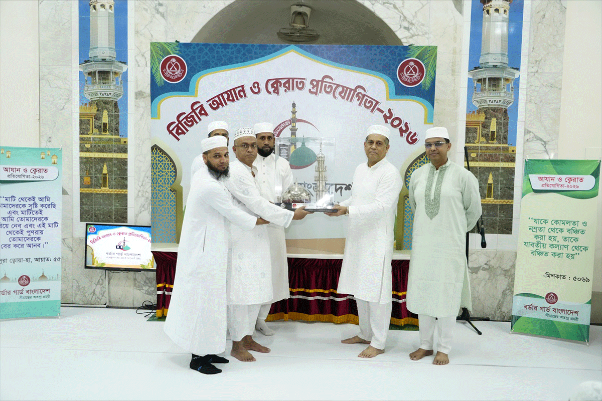 গত বুধবার (১১ মার্চ) পিলখানা সংলগ্ন বিজিবি সদর দপ্তরের কেন্দ্রীয় জামে মসজিদে তিন দিনব্যাপী আজান ও ক্বেরাত প্রতিযোগিতার চূড়ান্ত পর্ব অনুষ্ঠিত হয়। আজান প্রতিযোগিতায় চূড়ান্ত পর্বে রামু সেক্টরের অধীনস্থ টেকনাফ ব্যাটালিয়ন (২ বিজিবি) এর ল্যান্স নায়েক মোহাম্মদ জাকারিয়া প্স্থারথমন এবং ঢাকা সেক্টরের অধীনস্থ ঢাকা ব্যাটালিয়ন (৫ বিজিবি) এর সিপাহী মো. সাইফুল ইসলাম দ্বিতীয় স্থান অধিকার করেন।