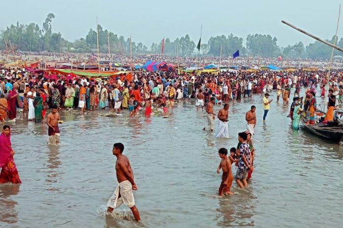 কুড়িগ্রামের চিলমারীতে ব্রহ্মপুত্র নদের তীরে সনাতন ধর্মাবলম্বীদের ‘অষ্টমী স্নান’ উৎসবে লাখো পুণ্যার্থীর সমাগম ঘটেছে। শনিবার ভোর থেকে উপজেলার বিভিন্ন পয়েন্টে ব্রহ্মপুত্র তীরে স্নানের জন্য পুণ্যার্থীদের ঢল নামে। উপজেলা প্রশাসন রমনা ঘাট, বালাবাড়ী হাট, রানীগঞ্জ হাট ও ফকিরের হাট পয়েন্টে স্নানের ঘাট স্থাপন করেছে।