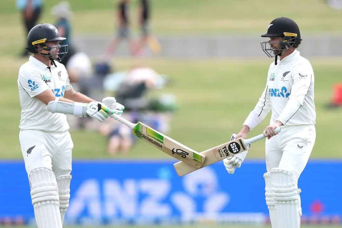 ১৫৫ রান এগিয়ে থেকে দ্বিতীয় ইনিংসে ব্যাটিং করতে নামা নিউজিল্যান্ডের ওপেনিং জুটি থেকে আসে ১৯১ রান। কনওয়ে ১০০ রানের ঘরে ফেরার পর জুটি ভেঙে যায়। এরপর লাথামও সেঞ্চুরি করেন। উইলিয়ামসন ৩৭ বলে ৪০, রবীন্দ্র ২৩ বলে ৪৬ রানে অপরাজিত ছিলেন।
