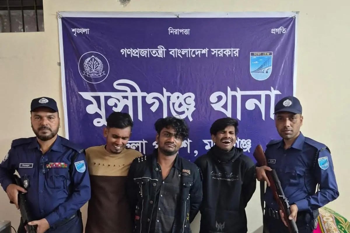 মুন্সীগঞ্জ সদর উপজেলায় ডাকাতির প্রস্তুতির সময় দেশীয় অস্ত্রসহ শ্রমিক লীগ নেতাসহ ৩ জনকে গ্রেফতার করেছে সদর থানা পুলিশ। আজ বৃহস্পতিবার ভোর সাড়ে চারটার দিকে মুন্সীগঞ্জ সদরের পঞ্চসার ইউনিয়নের মুক্তারপুর গ্রামের কানাইবাড়ি এলাকা থেকে তাদের গ্রেফতার করা হয়।