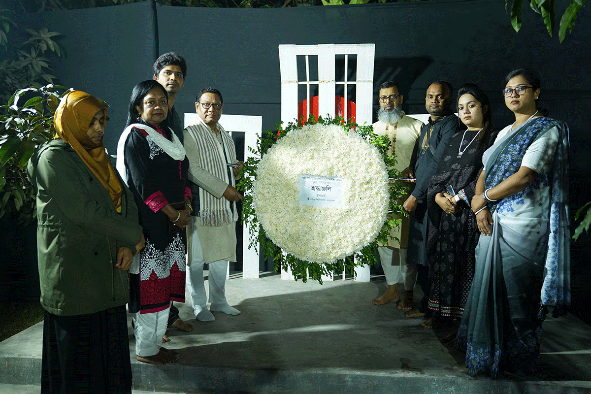 পরবর্তীতে একুশের প্রথম প্রহরে ভাষা শহীদের স্মৃতির প্রতি বিশ্ববিদ্যালয়ের কেন্দ্রীয় শহীদ মিনারে পক্ষ থেকে পুষ্পস্তবক অর্পণ করা হয়।