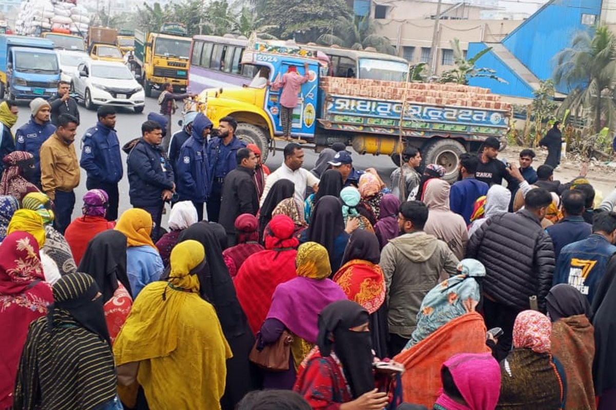 নারায়ণগঞ্জের সিদ্ধিরগঞ্জে একটি গার্মেন্টস কারখানায় শ্রমিক ছাঁটাইয়ের প্রতিবাদে ঢাকা–চট্টগ্রাম মহাসড়ক অবরোধ করে বিক্ষোভ করেছেন শ্রমিকরা। এতে প্রায় ৪০ মিনিট মহাসড়কের উভয় পাশে যান চলাচল বন্ধ হয়ে যায়।