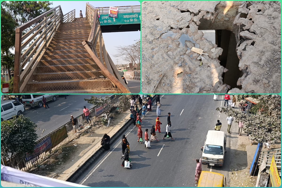ঢাকা–চট্টগ্রাম মহাসড়কের কুমিল্লা অংশে একাধিক ফুটওভার ব্রিজ জরাজীর্ণ হয়ে পড়ায় ঝুঁকি নিয়ে চলাচল করছেন পথচারীরা। ব্রিজের লোহার পাত ছিদ্র হয়ে যাওয়ায় অনেকের পা আটকে দুর্ঘটনার শিকার হচ্ছেন। ব্রিজ ব্যবহার করতে অনেকে অনীহা দেখানোয় মহাসড়ক দিয়ে সরাসরি পারাপার বাড়ছে, ফলে দুর্ঘটনার ঝুঁকিও বেড়েছে।