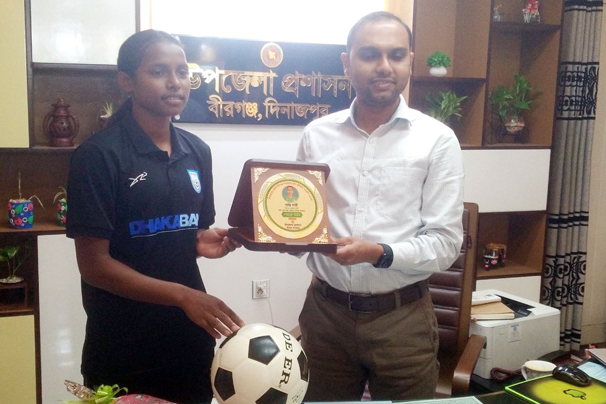 শান্তির অর্জনকে সম্মান জানাতে বৃহস্পতিবার সকালে বীরগঞ্জ উপজেলা প্রশাসনের উদ্যোগে সংবর্ধনা অনুষ্ঠান অনুষ্ঠিত হয়। এসময় শান্তি মার্ডীকে সংবর্ধনা স্মারক ও অনুশীলনের জন্য ফুটবল প্রদান করা হয়।