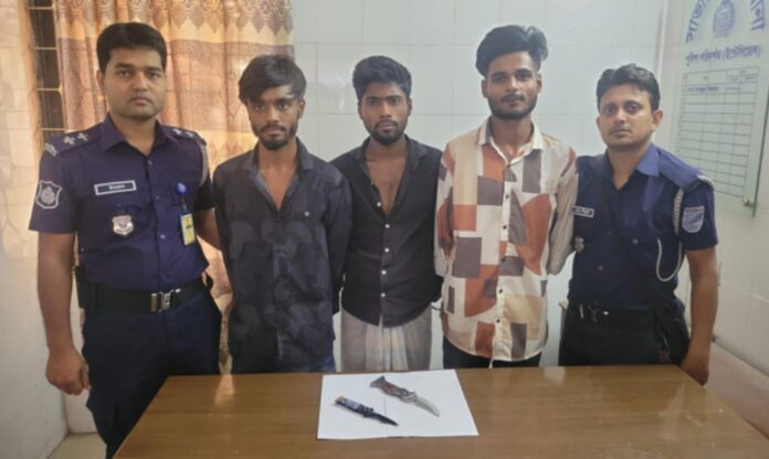 গ্রেফতারকৃতরা হলেন- ইউসুফ রহমান (২০), আনান হোসন (২১) এবং দ্বীপক সূত্রধর (২৪)।