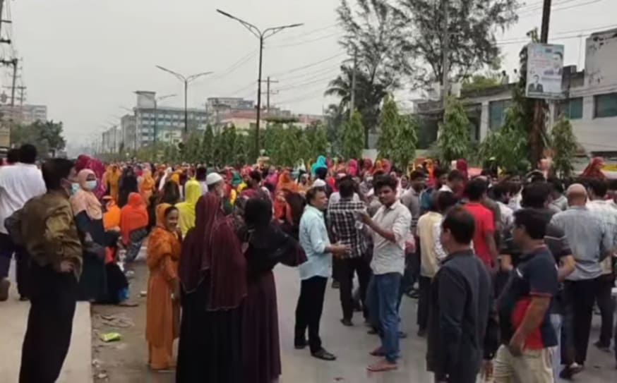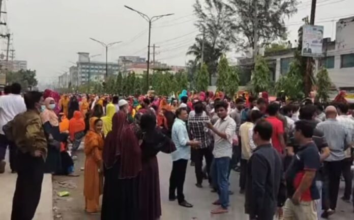 সাভারে বকেয়া বেতন ও ঈদ বোনাসের দাবিতে সড়ক অবরোধ