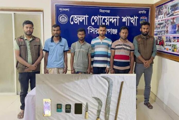 গ্রেফতারকৃতরা হলেন সিরাজগঞ্জ শহরের মাহমুদপুর মহল্লার ৩ নং গলির হামিদুল ইসলামের ছেলে তুষার হোসেন (৩০), রায়পুর উত্তরপাড়ার ১নং মিলগেট এলাকার আব্দুল লতিফ খানের ছেলে তুষার আহম্মেদ অন্তর খান (২৯), কামারখন্দ উপজেলার কোনাবাড়ী গ্রামের সোলায়মান মন্ডলের ছেলে রাশেদুল ইসলাম ওরফে কেতু  (৩৫) ও একই এলাকার মানিক মন্ডলের ছেলে আব্দুর রহিম মন্ডল (৩৬)।