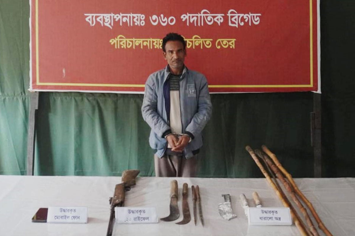 হবিগঞ্জে এয়ারগান ও দেশীয় অস্ত্রসহ দুর্ধর্ষ ডাকাত কিতাব আলীকে আটক করেছে সেনাবাহিনী।